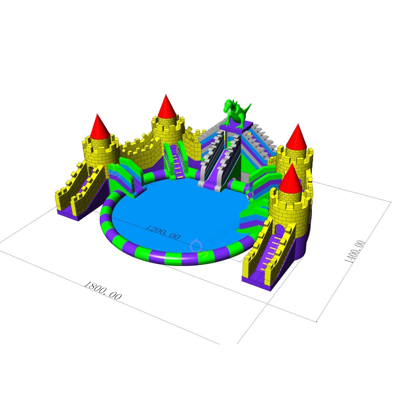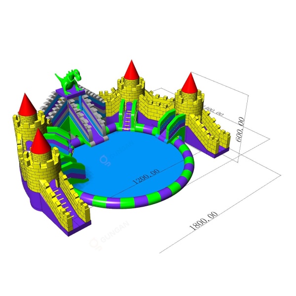 Lépjen be egy varázslatos világba vízi attrakciónkkal, egy vízi várossal, várral és sárkánnyal! A gyerekek el lesznek ragadtatva az egyedülálló témától, amely a vízi szórakozást egy sárkány által őrzött kastélyban zajló izgalmas kalanddal ötvözi. Fesztiválok, szabadtéri partik és családi rendezvények ideális attrakciója, amely garantálja a sok szórakozást és vízi izgalmat.