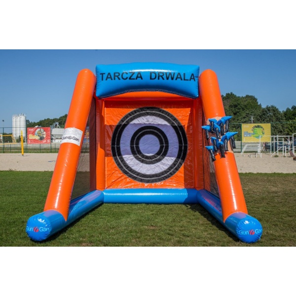 A Felfújható favágó pajzs - fejsze dobás olyan felfújható attrakció, amelyet mindazoknak ajánlunk, akikben él a versenyszellem. A szórakozás már abban a pillanatban elkezdődik, amikor elindul a küzdelem a többi résztvevő ellen. A kihívás szintje az ellenfél csoport felkészültségétől és ügyességétől függően nő. A felfújható pálya rengeteg izgalmat nyújt, miközben teljesen biztonságos. Nem igényel különleges fizikai erőnlétet – szinte bárki részt vehet a játékban. A Felfújható favágó pajzs - fejsze dobás szabadtéren és sportcsarnokban is használható, így egész évben bevethető.