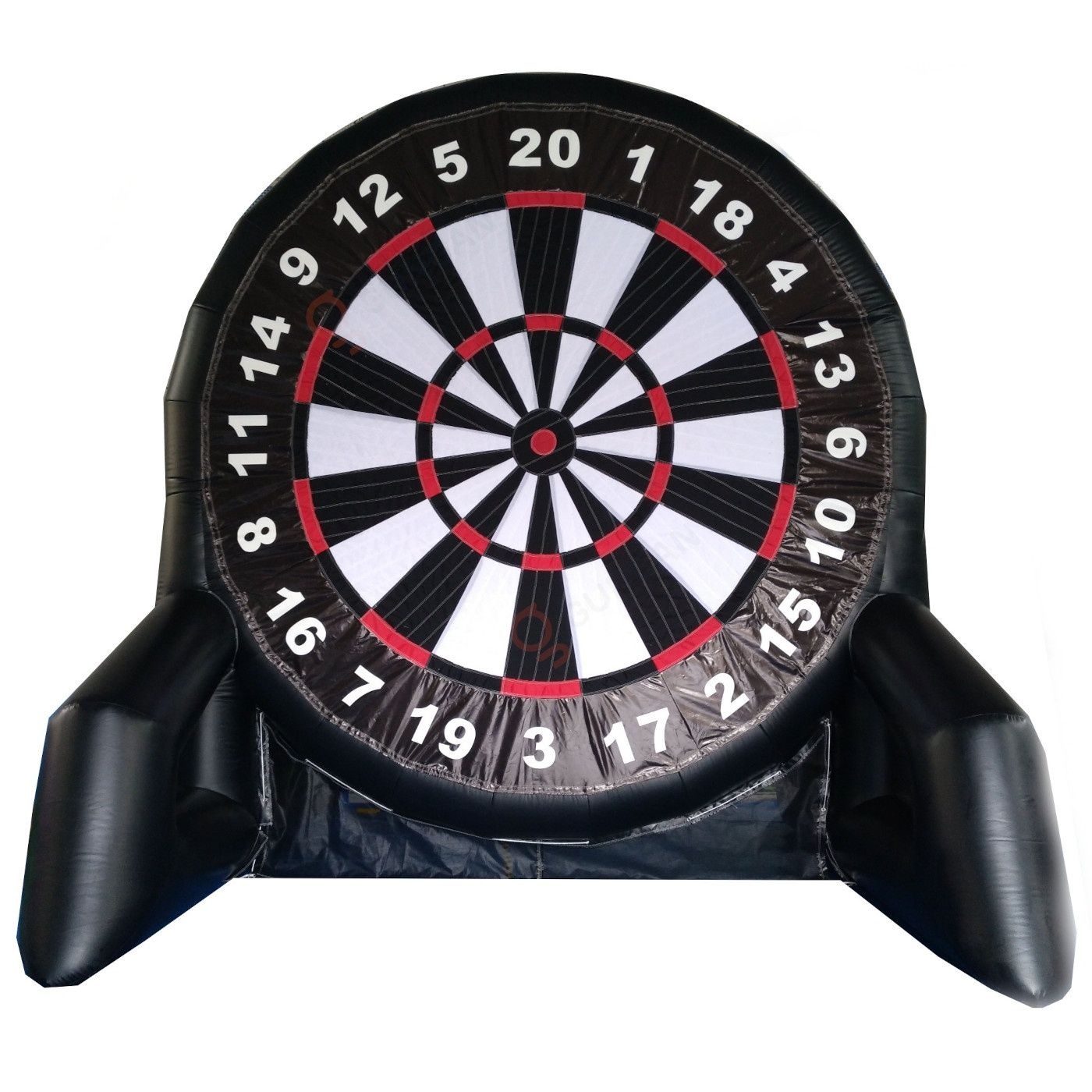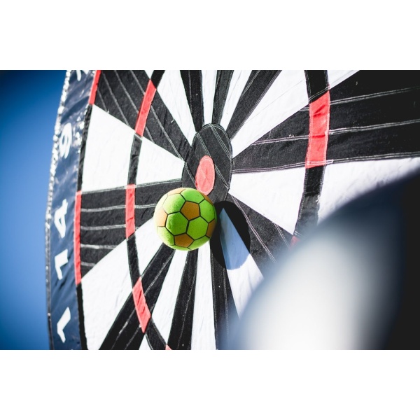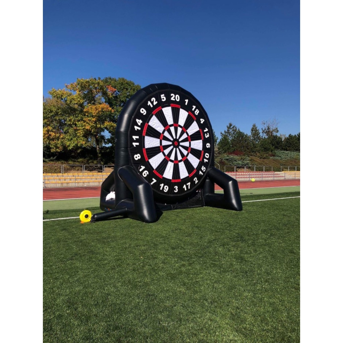 Fokozza az izgalmakat a szabadtéri rendezvényeken a kétoldalas felfújható futball darts céltáblánkkal! Ideális versenyzésre gyermekek és felnőttek számára egyaránt, a dobás pontosságát a futball pontosságával ötvözi. Tökéletes attrakció csapatépítő rendezvényekre, ünnepségekre vagy vállalati eseményekre egy egészséges adag szórakozáshoz és nevetéshez!