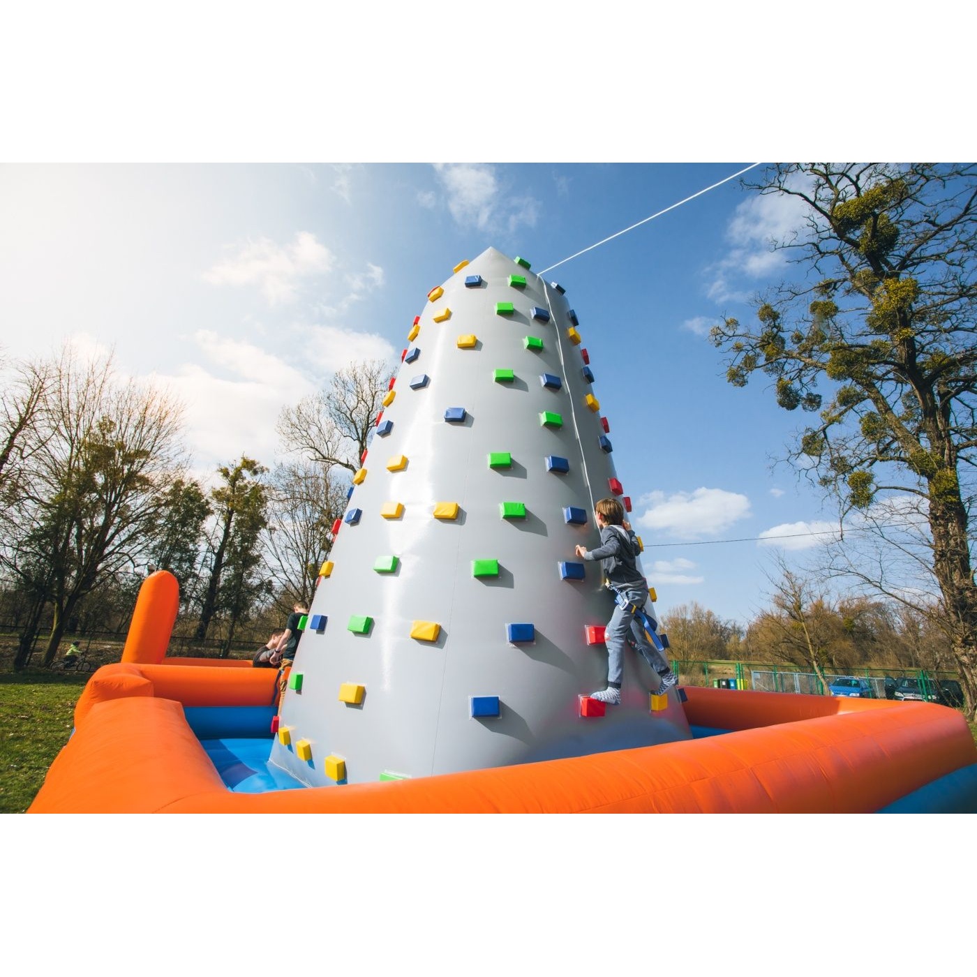 A mászófal egy felfújható attrakció, amely gyermekek és felnőttek számára egyaránt vonzó. Adrenalin és biztonság egyben. Az attrakcióhoz nem tartoznak hevederek vagy kötelek a rögzítéshez.