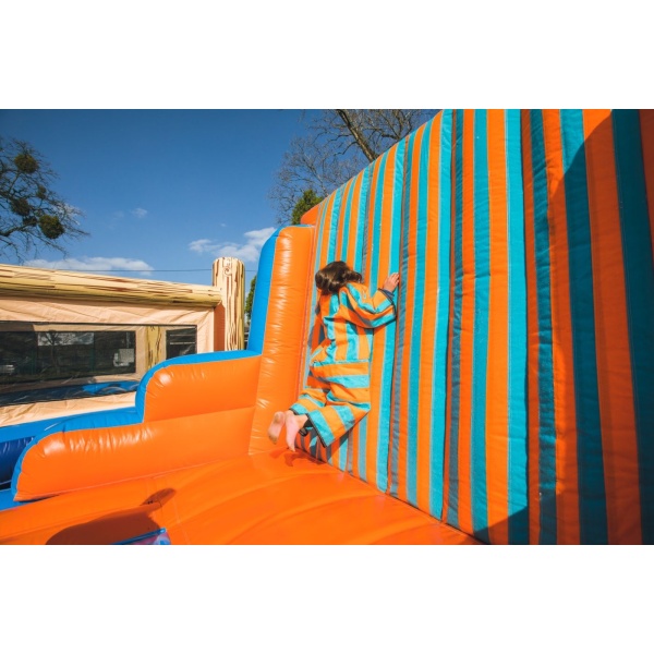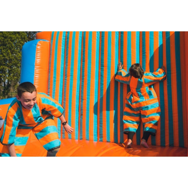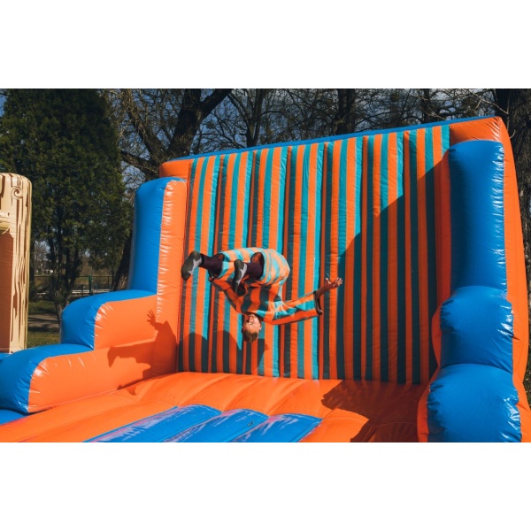 A Felfújható tépőzáras fal olyan felfújható attrakció, amelyet mindazoknak ajánlunk, akikben él a versenyszellem. A szórakozás már abban a pillanatban elkezdődik, amikor elindul a küzdelem a többi résztvevő ellen. A kihívás szintje az ellenfél csoport felkészültségétől és ügyességétől függően nő. A felfújható pálya rengeteg izgalmat nyújt, miközben teljesen biztonságos. Nem igényel különleges fizikai erőnlétet – szinte bárki részt vehet a játékban. A Felfújható tépőzáras fal szabadtéren és sportcsarnokban is használható, így egész évben bevethető.
