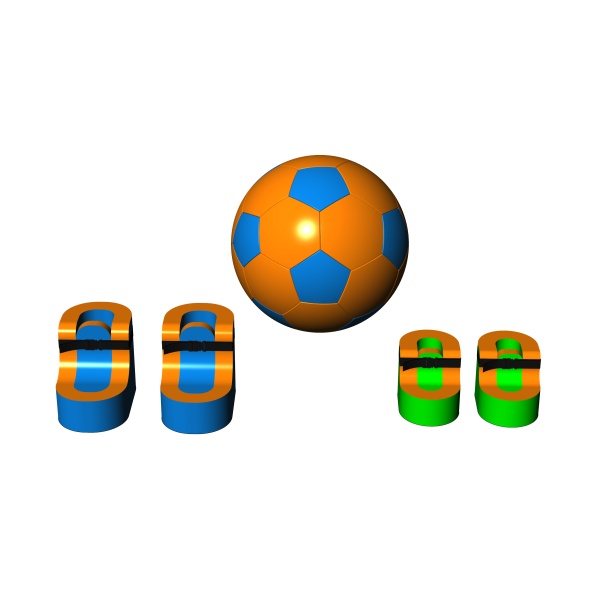 A gyerekeknek szánt giga focikészlet egy animációs mozgásfejlesztő attrakció, amely a szórakozást a sportverseny elemével ötvözi. A készlet négy pár narancssárga és zöld színű habszivacs megacipőt és egy nagy felfújható labdát tartalmaz, amely a csapatjátékokhoz van igazítva. A megváltozott lépésarányok izgalmasabbá teszik a játékot, és sok nevetést generálnak a résztvevők körében. Praktikus megoldás a gyermeknapokat, fesztiválokat és családi piknikeket szervező szórakoztatók, iskolák és kölcsönző cégek számára. A készlet legjobban nyitott térben működik, ahol biztonságosan lehet tornát tartani és nagyobb gyerekcsoportot bevonni.