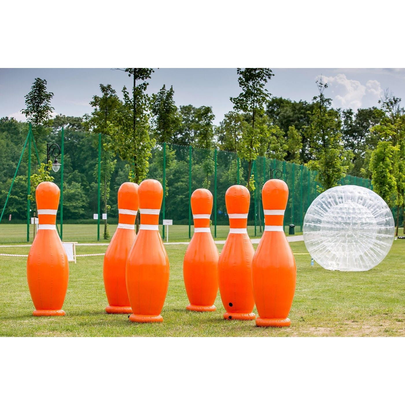 Emeld új szintre a versenyt az Emberi bowling szettünkkel! A készlet 6 hatalmas felfújható bowlingbábut és egy 3 méteres zorbing golyót tartalmaz, amellyel a résztvevők az emberi bowling szerepét vehetik fel. Ideális szabadtéri rendezvényekre, vállalati csapatépítésre és fesztiválokra, nagyszerű szórakozást és egészséges versenyt biztosít a gyermekek és felnőttek számára. A felfújható játék könnyen összeszerelhető és biztonságos minden résztvevő számára.