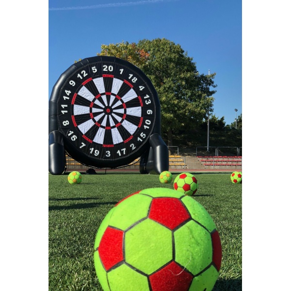 Szervezzen izgalmas focimeccseket a Football Darts kétoldalas felfújható korongkészlettel! A készletben mindent megtalálsz, ami egy teljes játékhoz szükséges: speciális labdák, felfújható, teleszkópos rúd a labdák levételéhez és egy horgonykészlet. Ideális attrakció szabadtéri partikra, fesztiválokra és vállalati rendezvényekre, amely egészséges versenyt biztosít a gyerekeknek és felnőtteknek egyaránt!