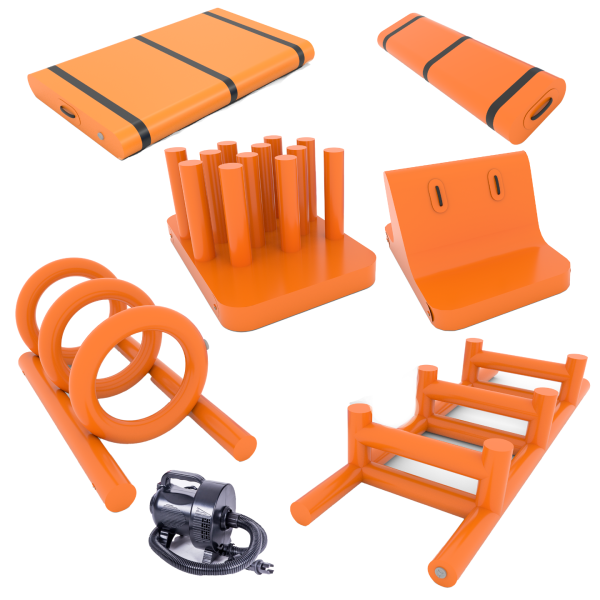 Egy csomag az adrenalin, a mozgás és a vízi izgalmak szerelmeseinek! A készlet tökéletes a nyári rendezvények forgatókönyveihez - a vízen, a füvön vagy a fesztiválokon. Az egyensúly, a mozgékonyság és a higgadtság a siker kulcsa ezekben a kihívásokban. A készlet tartalmaz egy pumpát az attrakció felfújásához.