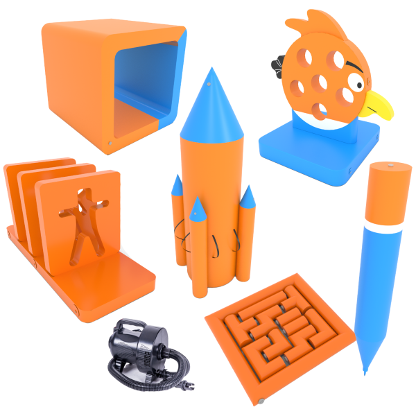Egy nem mindennapi készlet azok számára, akik szeretnék ösztönözni a csapat kreativitását, és szokatlan kihívásokba vonni a résztvevőket. Itt nem csak a mozgás számít, hanem a stratégia, a kommunikáció és a kreatív gondolkodás is. Nagyszerű csomag csapatjátékokhoz, workshopokhoz és integrációhoz "egy kis csavarral". A készlet tartalmaz egy pumpát az attrakció felfújásához.